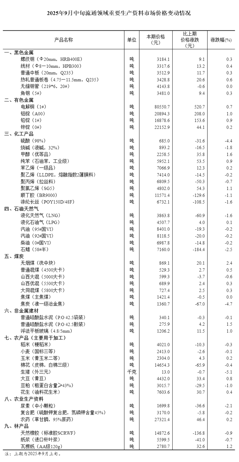 流通领域重要生产资料市场价格监测内容包括9大类50种产品的价格。类别与产品规格说明详见附表。